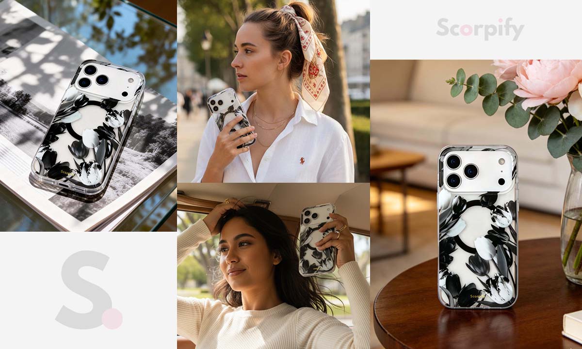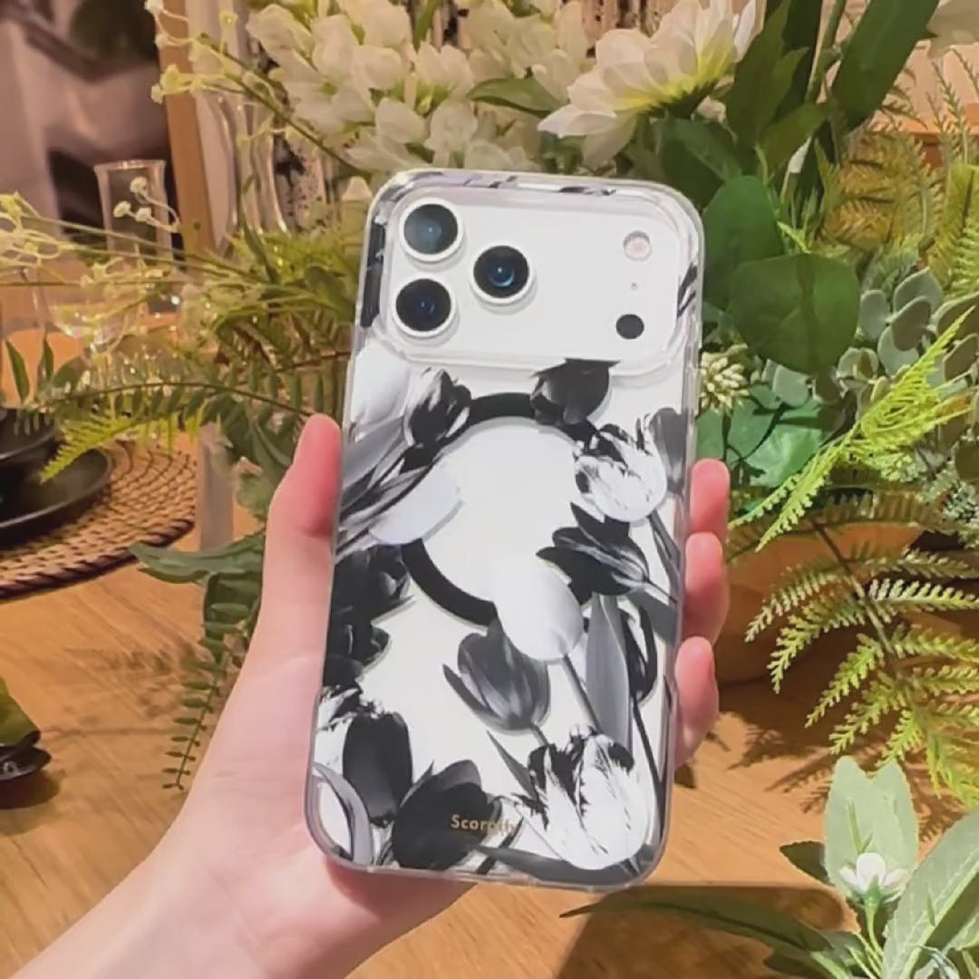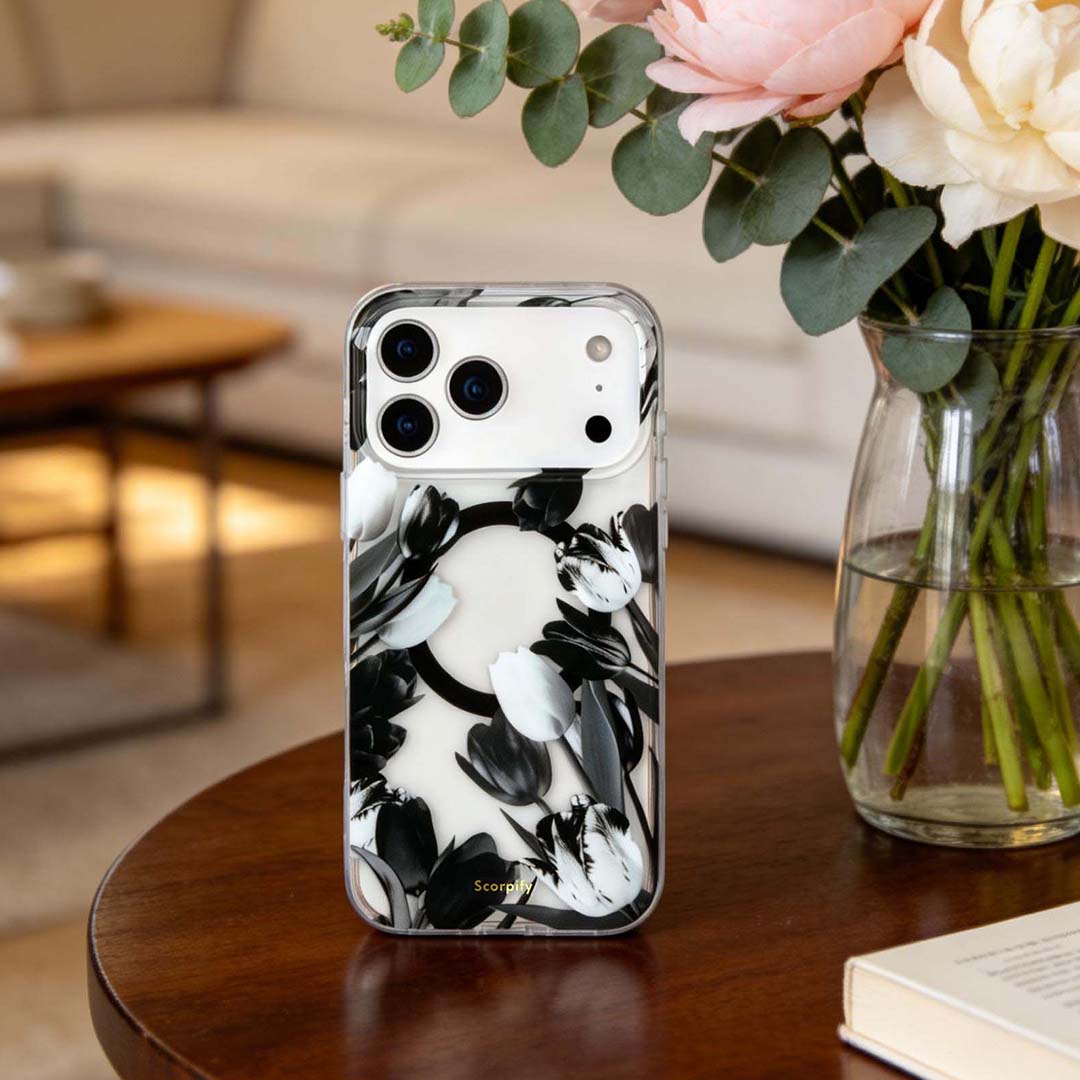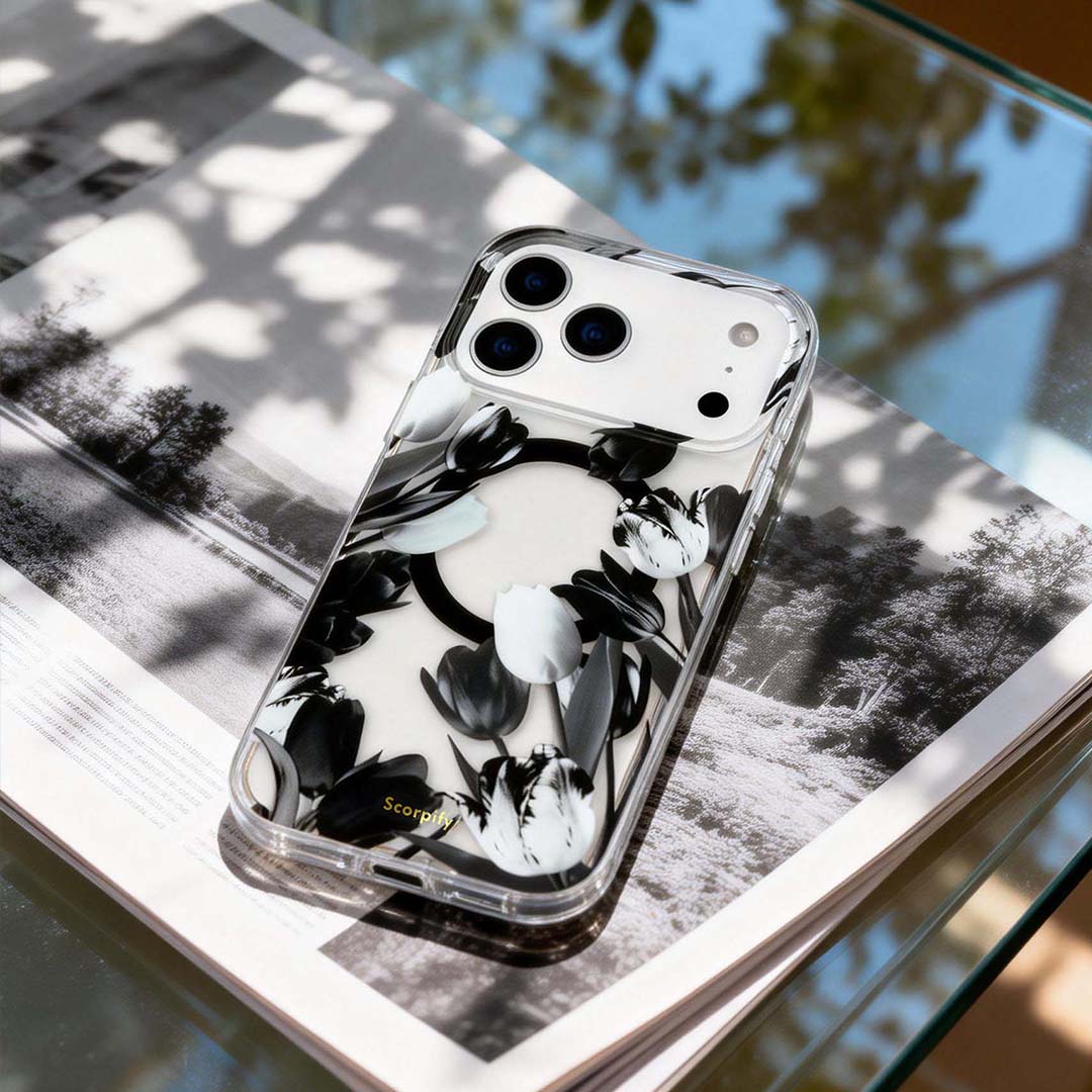 Show your fierce style wherever you go with Scorpify's Black Tulip MagSafe iPhone Case.