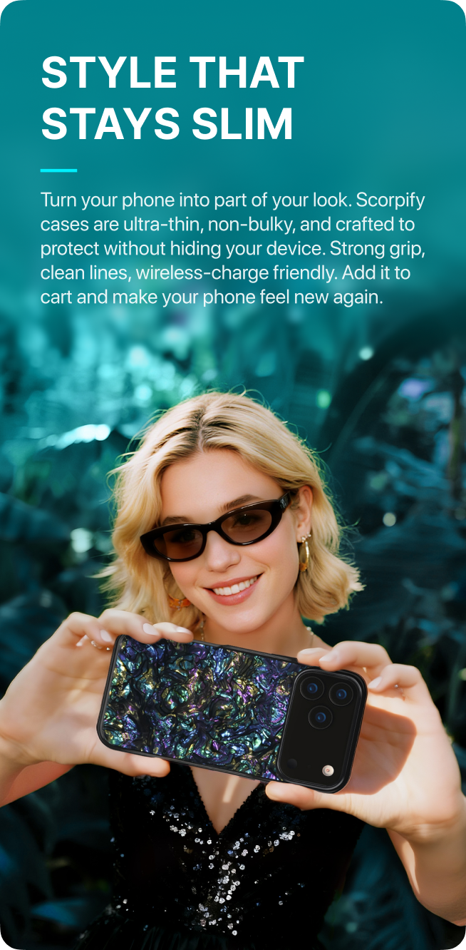 Show your fierce style wherever you go with Scorpify's Gleam Mystic Abalone MagSafe iPhone Case.