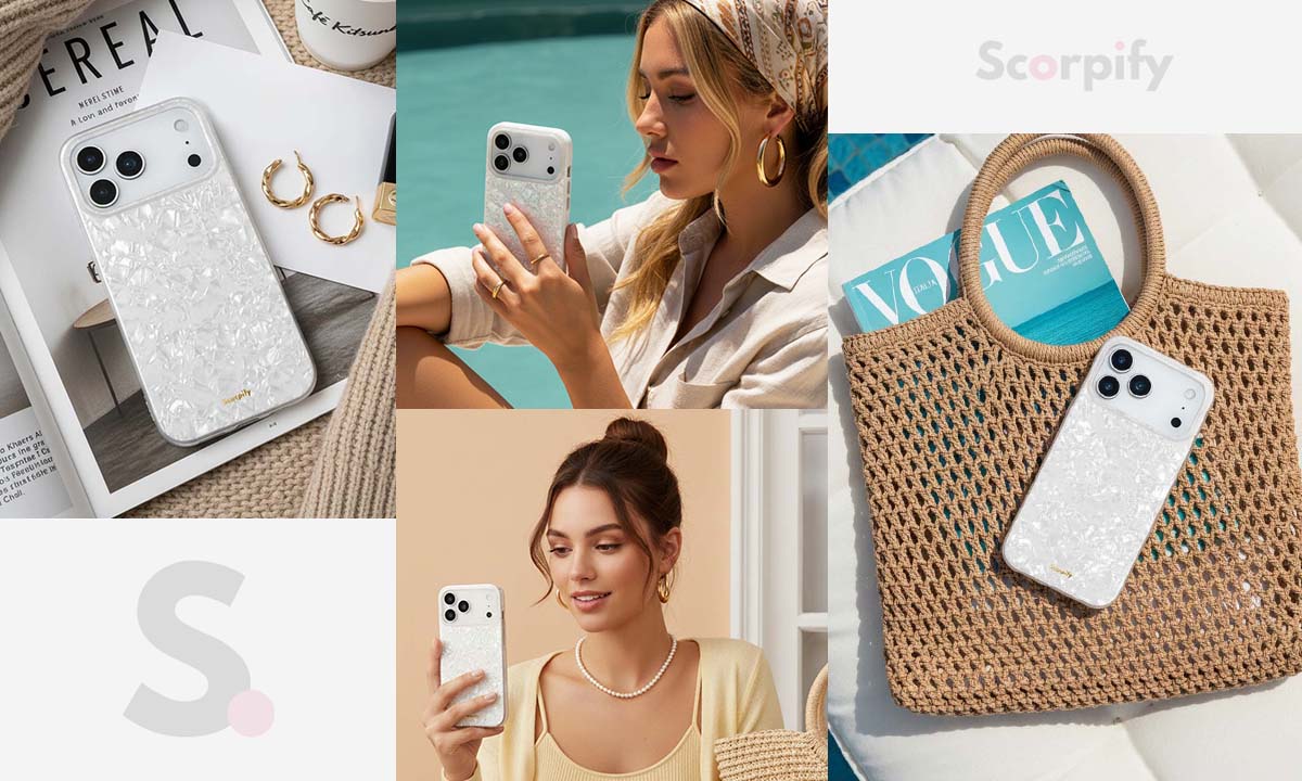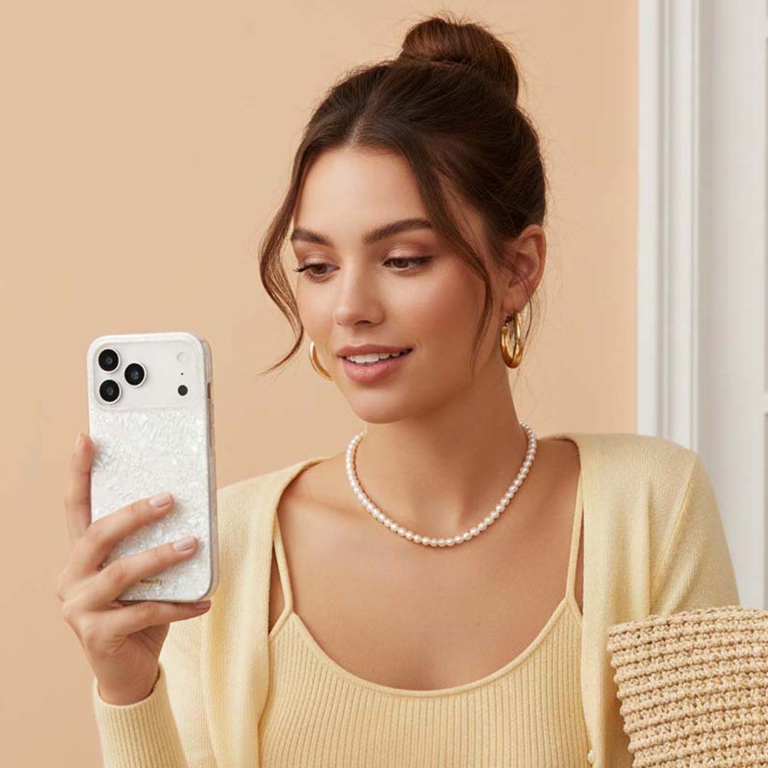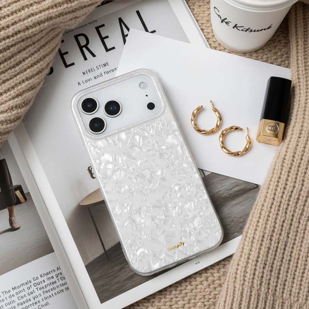 Scorpify’s white pearl iPhone 17 MagSafe case adds a refined pearlescent touch to your device. Designed with a mother-of-pearl finish, this iPhone case with pearls blends elegance and durability. With MagSafe compatibility, it ensures effortless charging while keeping your phone stylish and secure.
