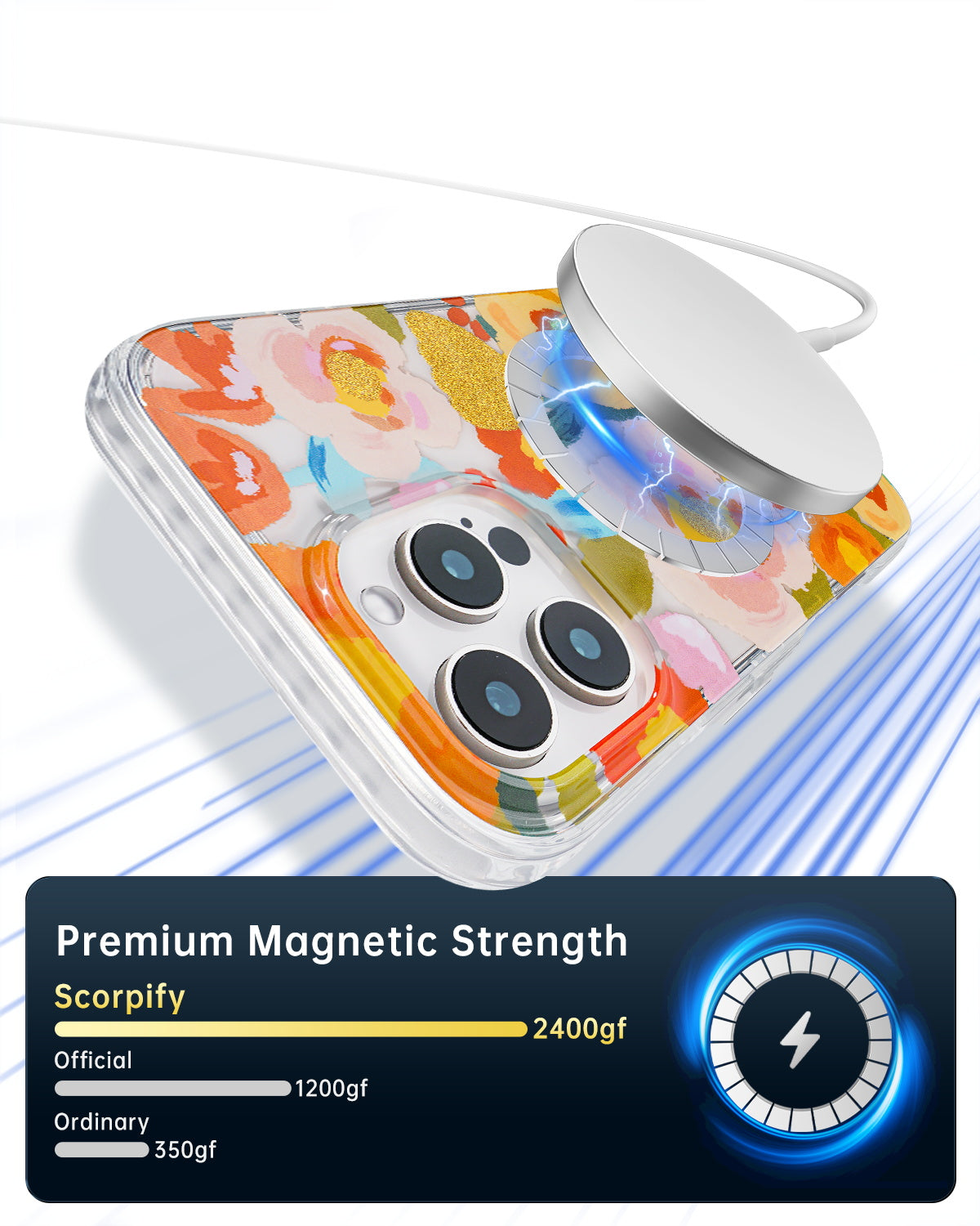 The Scorpify Heronsbill Magnetic iPhone Case showcases a floral motif accented with shimmering gold and integrated Magsafe support. This trendy iPhone cover provides dependable protection while remaining lightweight and stylish. Perfect for daily use or gifting, it combines practical functionality with luxurious design.
