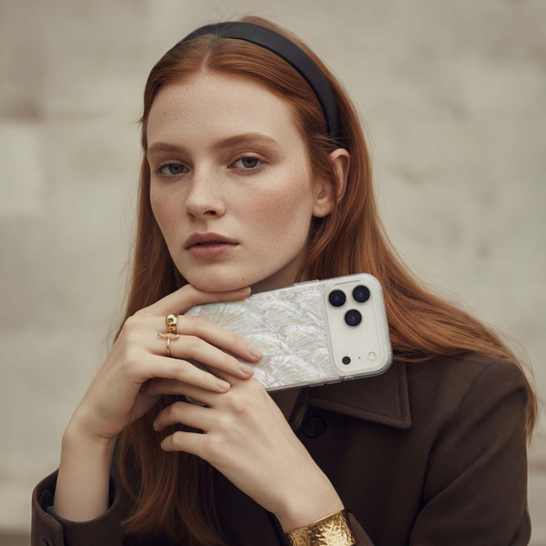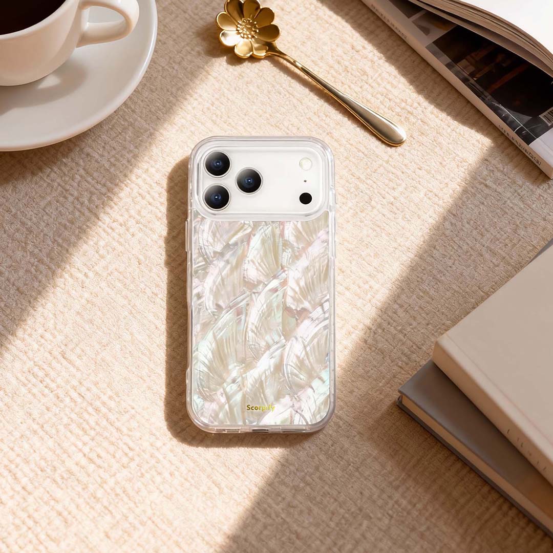 Show your fierce style wherever you go with Scorpify's Natural Mother of Pearl Magnetic iPhone Case.