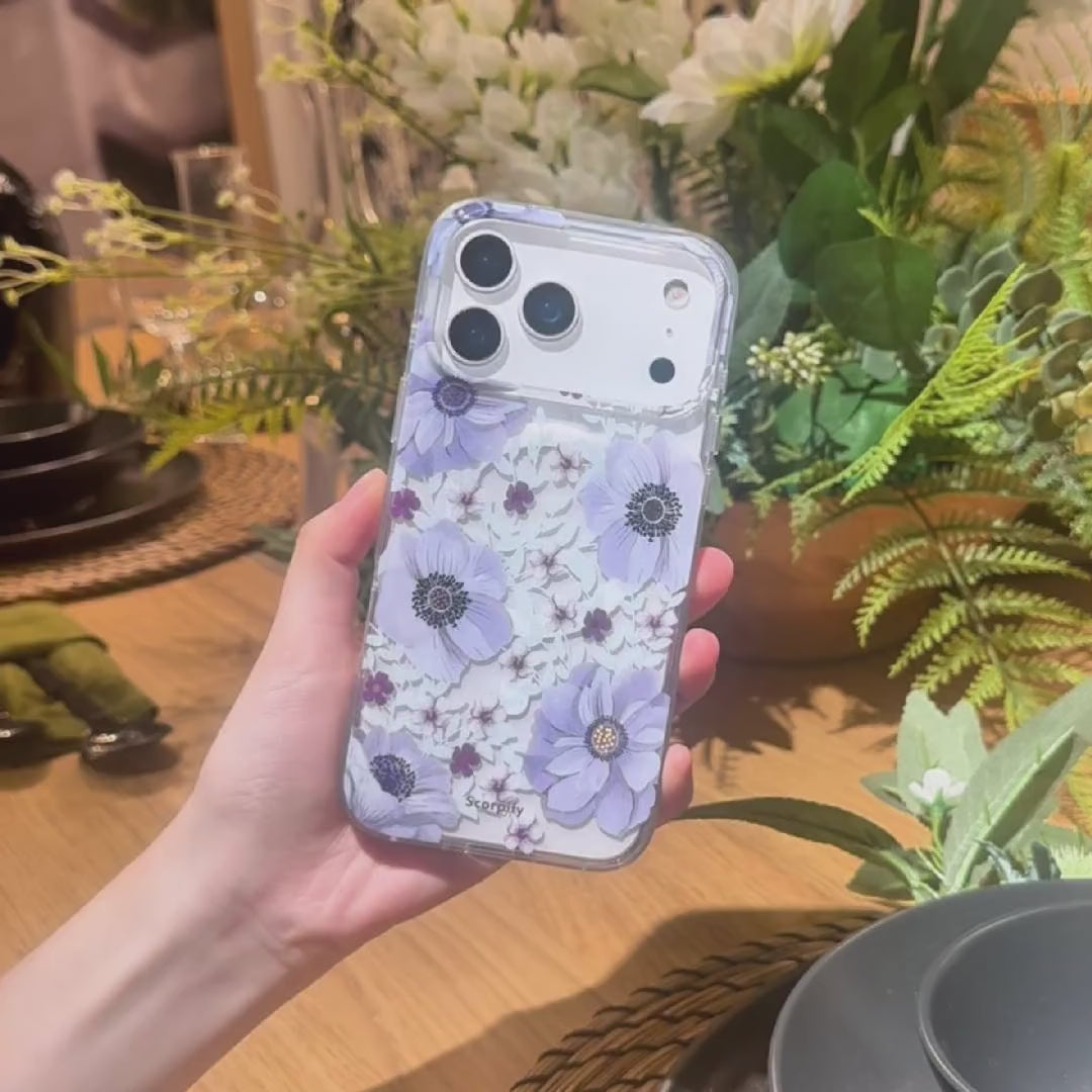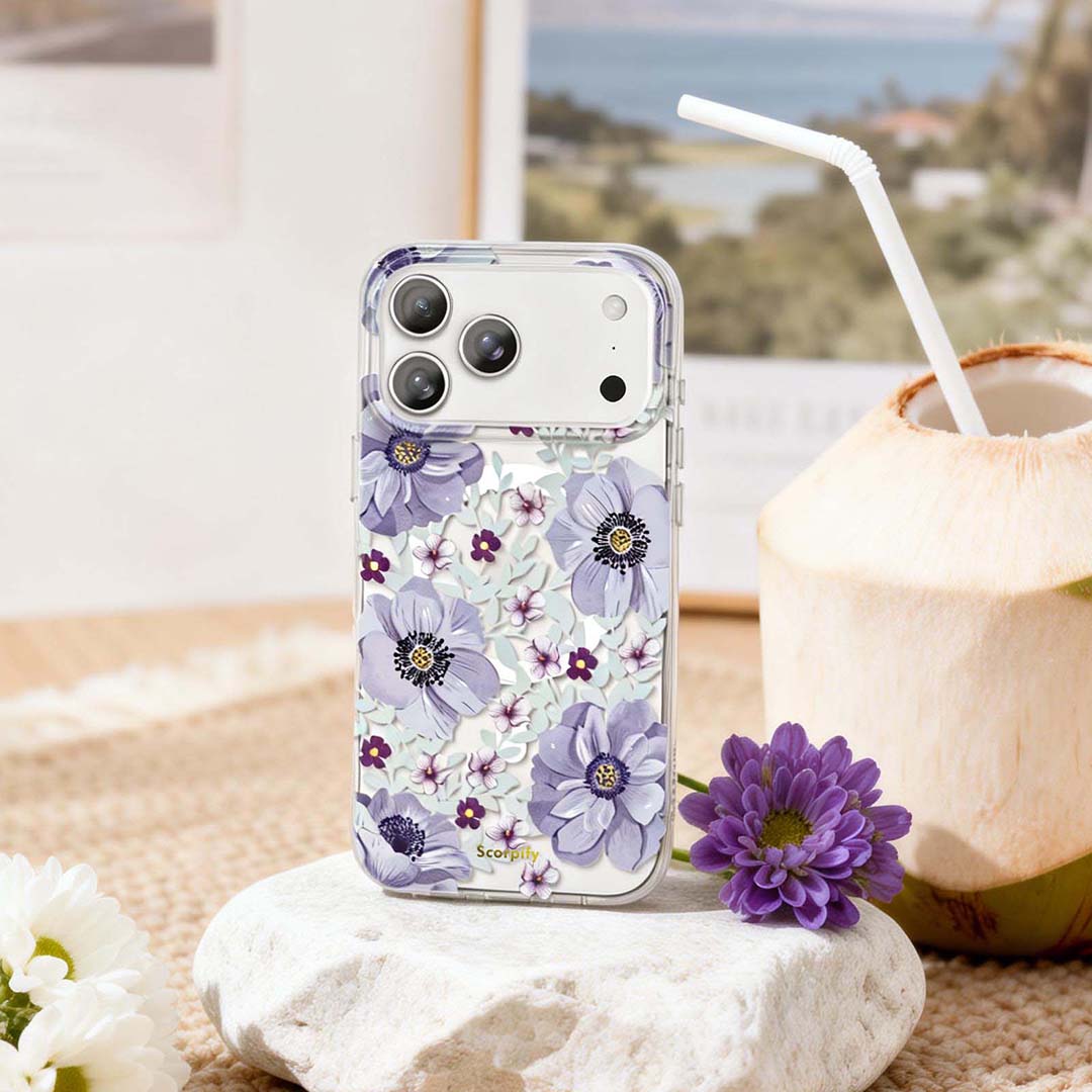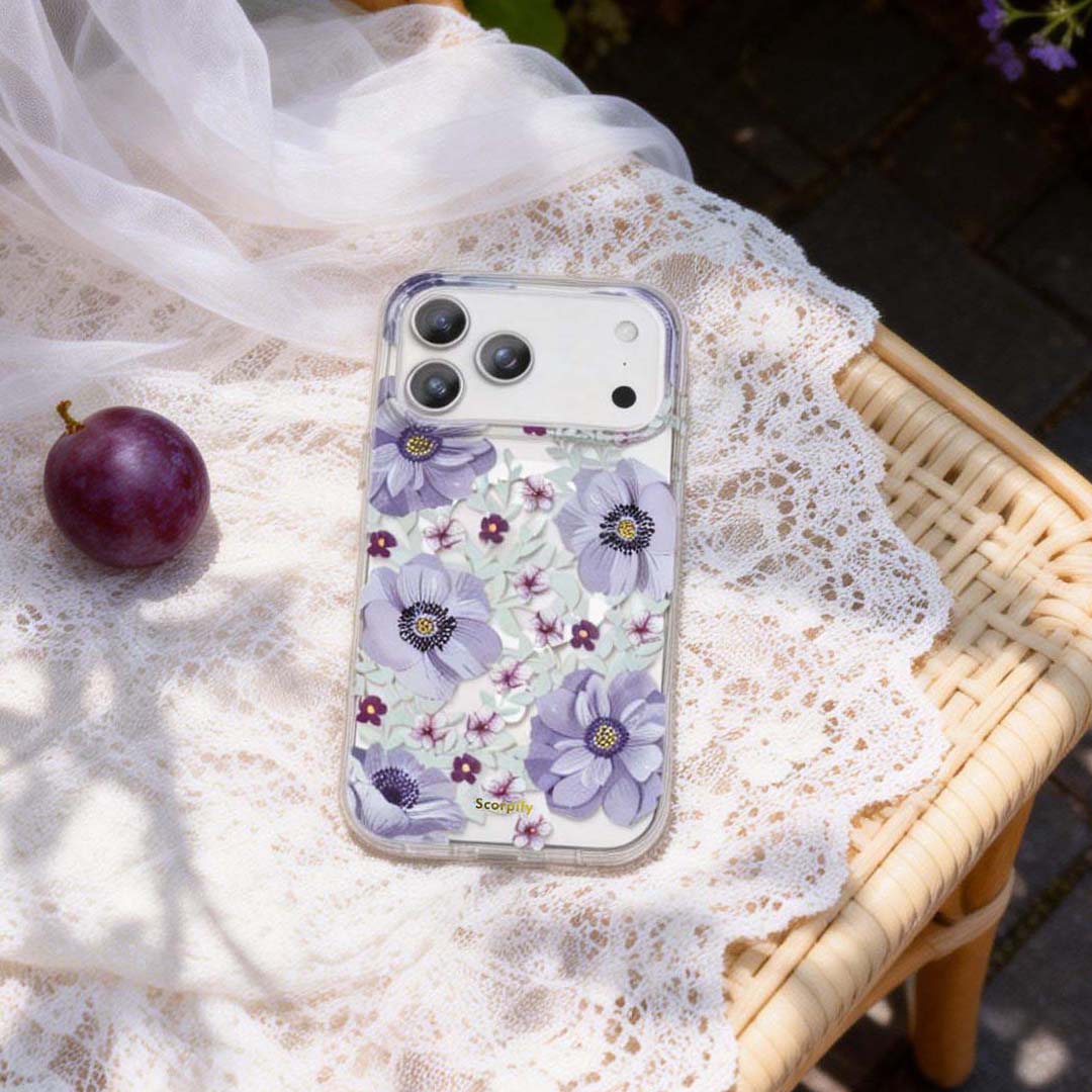 Scorpify’s Purple Anemone Clear MagSafe iPhone Case blends airy floral elegance with modern magnetic convenience. The transparent base highlights delicate purple anemone blooms while keeping your iPhone’s original design visible. With built-in MagSafe compatibility, it snaps effortlessly into chargers and accessories. The slim protective build creates a smooth case-on-phone feel, making it ideal for anyone who loves cute trendy phone cases with a soft botanical vibe and dependable everyday protection.