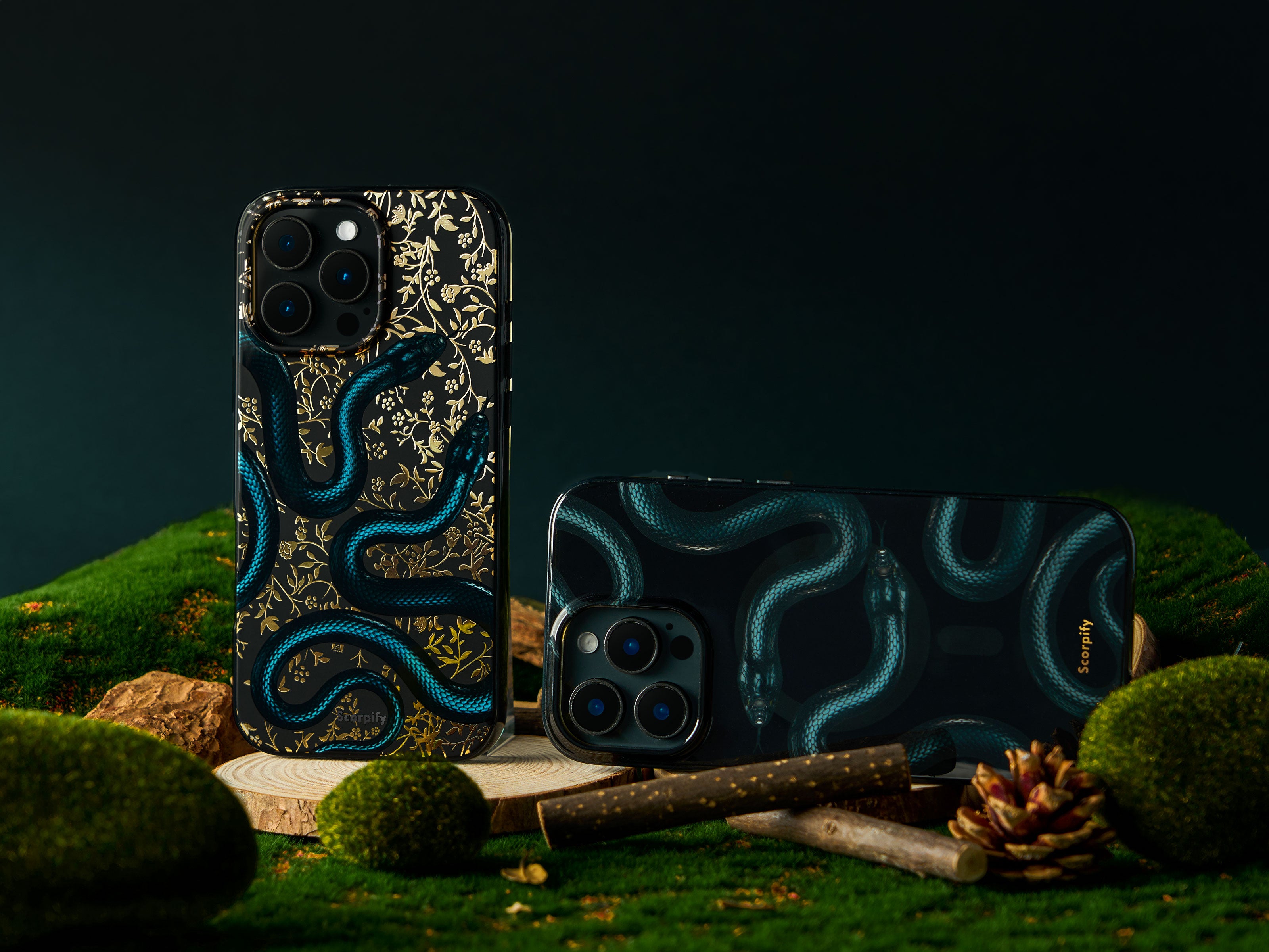 Show your fierce style wherever you go with Scorpify's Shadow Black Snake Magnetic iPhone Case.