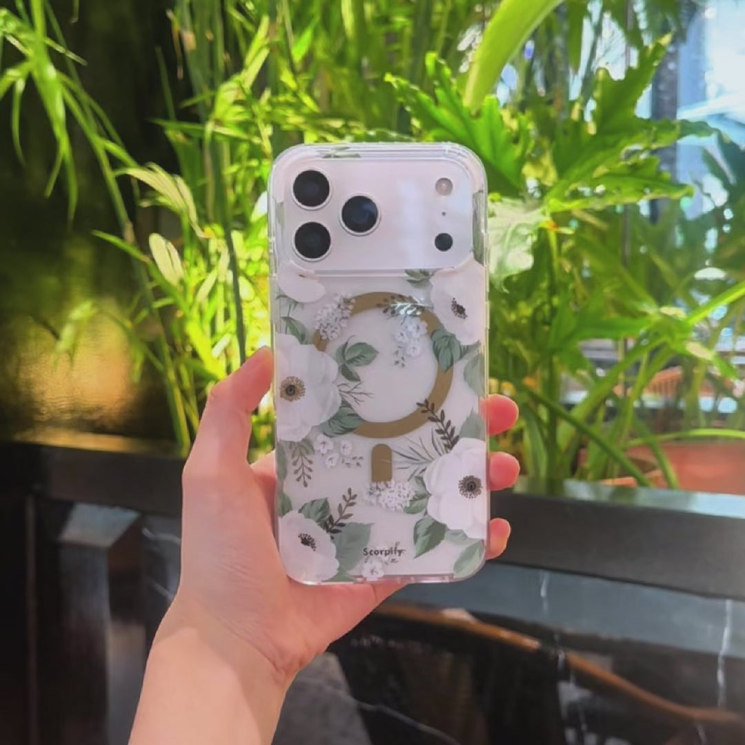 The White Rose Floral MagSafe iPhone Case by Scorpify captures the quiet grace of blooming roses in a refined, minimalist design. Its translucent base showcases a soft floral pattern that feels both romantic and modern. Built with MagSafe compatibility, this case ensures effortless charging and secure attachment to all magnetic accessories. The reinforced edges and anti-scratch coating provide reliable protection without adding bulk. Perfect for those who love subtle elegance and practical functionality in one beautiful case.