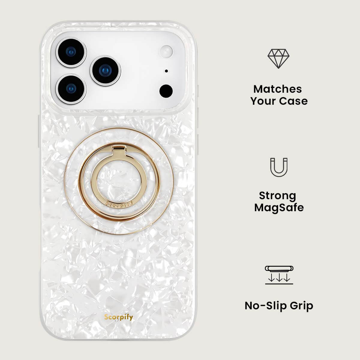 Choose the Scorpify White Pearl MagSafe Ring Holder to keep your phone secure, comfortable to hold, and always ready for hands-free moments.